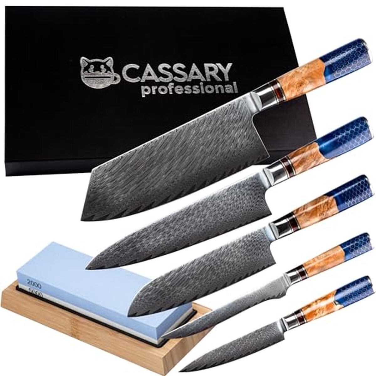 Amazon Basics Bloc de Couteaux, 9 pièces, NoirBloc de couteaux 9 pièces comprenant : (1) couteau de chef 20,3 cm, (1) couteau Santoku 17,8 cm, (1) couteau à trancher 20,3 cm, (1) couteau à pain 20,3 cm, (1) couteau utilitaire 12,7 cm, (1) couteau d'office de 9 cm, (1) aiguiseur de 20,3 cm, (1) bloc à couteaux Lames en acier inoxydable aiguisées avec précision pour une coupe durable Construction monopièce à 3 rivets pour un équilibre et un contrôle exceptionnels Manches ergonomiques pour une prise en main confortable et sûre Lavage à la main uniquement